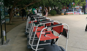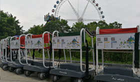 前往东莞香市动物园、中华麋鹿园等热门景区,在园区内只要找到指定租车点,就可以通过手机端的APP或者微信小程序租到好用省力的智能代步车了。这是爱尔威近阶段专门为4A级景区开发的智能化租赁平台,是建设智慧景区的重要一环。